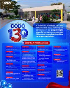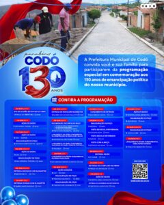 O município de Codó celebra 130 anos de história com uma programação especial preparada pela Prefeitura, reunindo uma série de ações que refletem o desenvolvimento, o cuidado com a população e os avanços conquistados.