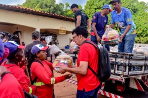 Durante a reunião, o gestor municipal realizou a entrega de cestas básicas aos servidores, iniciativa que tem como objetivo contribuir com o sustento das famílias e valorizar o trabalho desempenhado diariamente pelos profissionais da limpeza pública.